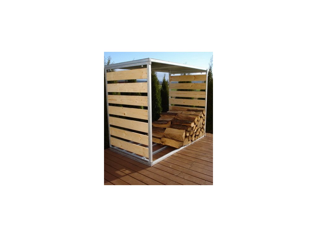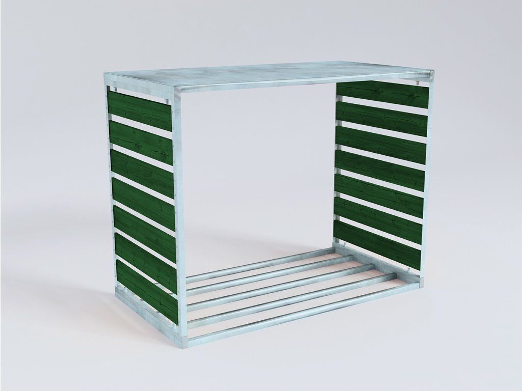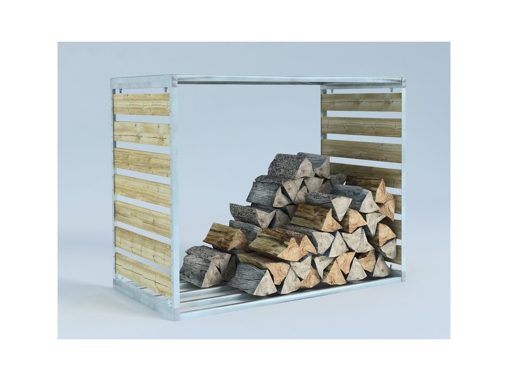 Dřevník, zásobník na palivové dřevo je vyroben v bezúdržbovém provedení žárovým zinkováním.